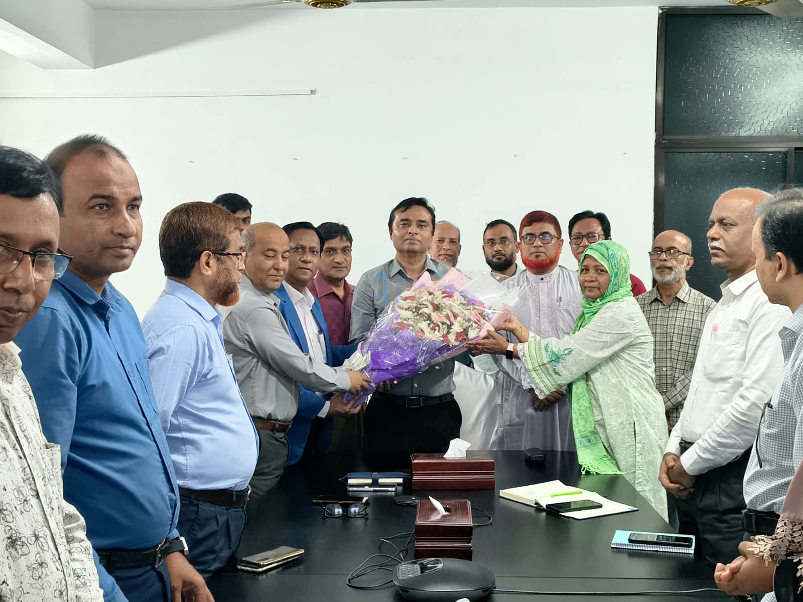 জনপ্রশাসন মন্ত্রণালয় থেকে প্রেষণে নিয়োগপ্রাপ্ত পিডিবিএফ-এর নবনিযুক্ত পরিচালক জনাব সালেহীন তানভীর গাজী (উপসচিব) মহোদয়কে ফুল দিয়ে বরণ করছেন পিডিবিএফ প্রধান কার্যালয়ের সহকর্মীবৃন্দ।