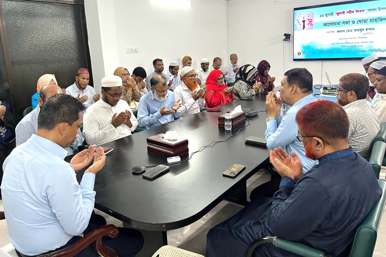 "জুলাই শহীদ দিবস" পালন উপলক্ষে পিডিবিএফ প্রধান কার্যালয়ে আলোচনা সভা ও দোয়া মাহফিলের স্থিরচিত্র।