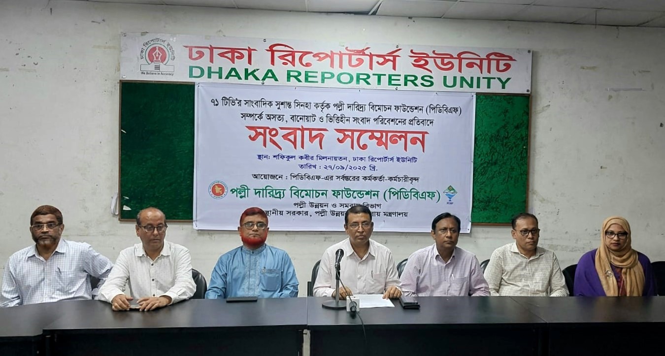 পিডিবিএফ সম্পর্কে সাংবাদিক সুশান্ত কুমার সিনহা কর্তৃক অসত্য, বানোয়াট ও ভিত্তিহীন সংবাদ পরিবেশনের প্রতিবাদে ২৭ সেপ্টেম্বর ২০২৫ তারিখ বিকাল ০৩:০০ ঘটিকায় ঢাকা রিপোর্টার্স ইউনিটিতে পিডিবিএফ-এর সর্বস্তরের কর্মকর্তা-কর্মচারীর উপস্থিতিতে সংবাদ সম্মেলন ও সংবাদ সম্মেলন শেষে প্রেস ক্লাবের সামনে মানববন্ধন অনুষ্ঠিত হয়।